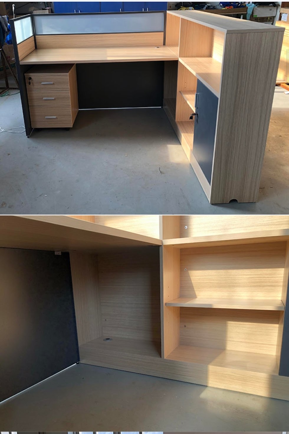 خلية عمل فردية مصممة لتعزيز بيئات العمل التعاونية والفعالة. السطح مصنوع من خشب ام دي اف بطبقة لامينيه لامعة توفر المتانة والمظهر الأنيق، مع جنب للتخزين. تتوفر بمجموعة متنوعة من الألوان وجميع المقاسات حسب الطلب
